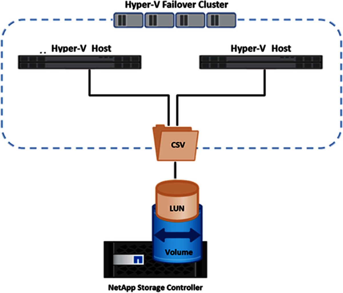 NetApp ONTAP unterstützt Hyper-V-Umgebungen umfassend. Virtuelle Maschinen können sowohl über SMB-basierte Cluster Shared Volumes als auch über klassische SAN-Protokolle wie iSCSI oder Fibre Channel angebunden werden. Diese Architektur ermöglicht hochverfügbare Hyper-V-Cluster mit Live-Migration, Failover-Clustering und unterbrechungsfreiem Betrieb.
